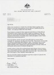 澳洲总理办公室复信关注在中国的法轮功学员亲属处境