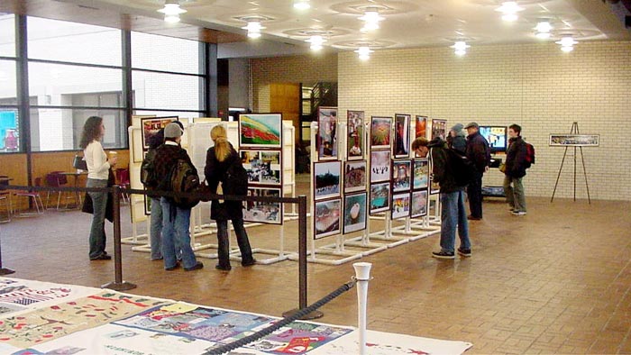 在展览开始的前二周,当地学员们作了大量的准备工作,在全国性的中文综合报刊上和大学的校报上登发图片展览广告;多元文化中心热情帮助,利用他们中心的资源,给全校教职工人员发了二次通知;“中国之友”团体将本次活动作为一个近期最重要的活动来举办,给全校华人学生学者发了书面通知,并且在该团体网页上作了宣传。经阿肯色大学学生中心同意,12月4日图片将移到学生中心的大厅里继续展览。这里是全校师生活动中心,人来人往,前来参展的人数络绎不绝,其中不乏可贵的中国学生和学者,当他们看到这些一幅幅珍贵的图片时,一定震动很大。很多西方学生也前来参观,他们对江氏集团发动的这场邪恶迫害非常的反感,对大法产生了浓厚的兴趣,并问我们他们能帮助作些什么来制止这场邪恶迫害。学员们在大厅里播放了揭露迫害真相的英文录像,同时派发大法简介和真相资料。