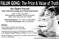 画廊经营者和主人山姆.以色列(Sam Israel)也对观众讲了话,并接受了一家当地电视台的采访。在一宗起诉两家中文报纸的案件中,以色列先生担任法轮功之友和其他原告人的律师。