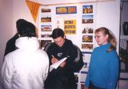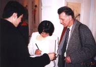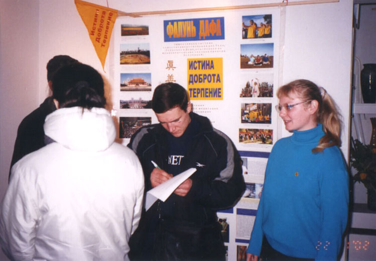 | 新的参观者不断地到来 | 一些被章翠英的绘画天才所倾倒的人拿走了她的“小传” | 这两天有很多人在声援遭受迫害的法轮功修炼者的签名簿上签上了自己的名字 |