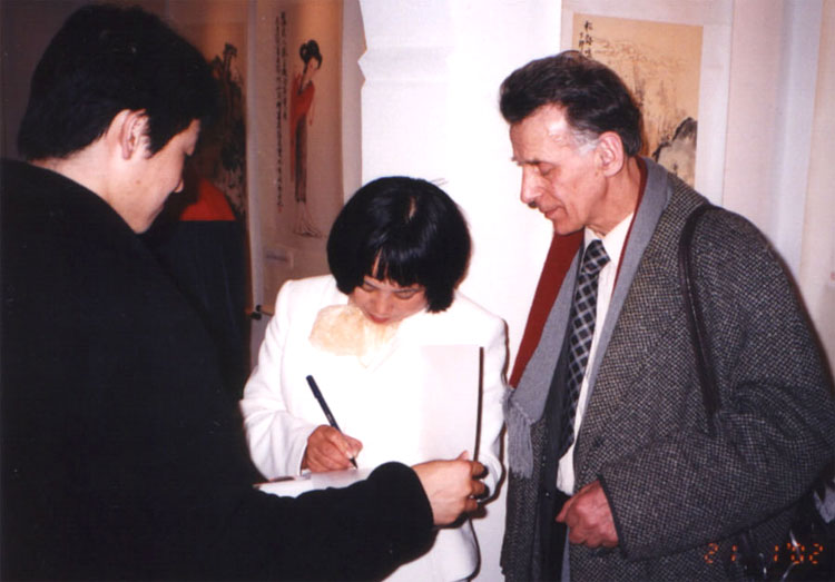 中午章翠英开始进行绘画技巧介绍,小小的基辅画廊没能装下章翠英国画的爱好者。