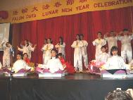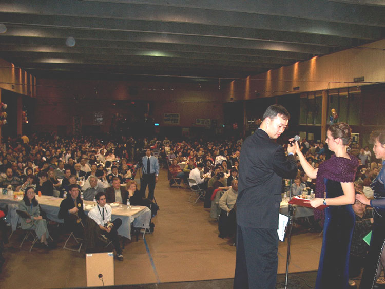 1月30日晚,多伦多法轮功修炼者,为答谢社会各界人士在两年多来对法轮功学员的支持和帮助,邀请各界朋友同迎新春,在多伦多市中心的市政府所属的一个大厅里,举办了有一千二百多人参加的春节联欢晚会,内容包括自助餐和文艺演出,参加晚会的有政要、律师、教授、华侨界名流及外国驻多伦多的外交使节,其中华人占大多数。