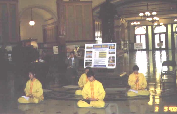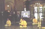 功法展示时,弟子们随大法的音乐及师父的口令做起了五套功法,自然而优美。每位学员都那么祥和,带出一个非常祥和的场。围观的人有些举起双手学起了抱轮动作,有人说:这真是祥和,宁静而美好,如我能什么都不想每天这么打坐半小时就好了,我能感受到你们内在的力量。很多人索取资料表示要学习这套功法。有位秘书小姐非常遗憾地告诉学员,她因太忙错过了功法展示,与她同办公室的人看了功法展示并拿了资料,其他同事都争相传阅大法资料。一位摄影记者被大法学员的宁静,祥和而感动,拍摄了大量学员炼功照片。
