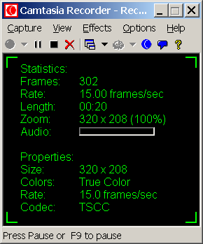 与EO Video等软件相比,camtasia的缺点是必须有人守在电脑旁,在录像结束时点按stop钮,不然会无限制地录下去而耗尽硬盘空间。而且在捕捉过程中最好不要运行其它程序。另外一般地,在开始播放影片之前就要开始捕捉,在影片放映结束后才结束捕捉,这样可能需要将捕捉生成的avi文件的多余的头尾去掉,多了一道手续。不过这些应该不算很大的问题。