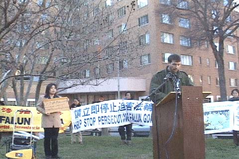 【明慧网2002年2月15日】今天晚上纽约地区法轮功学员前往中国驻纽约总领馆进行烛光守夜,要求中国政府释放在天安门广场举行国际请愿的40余名西人同修。