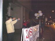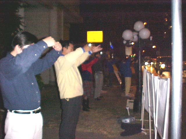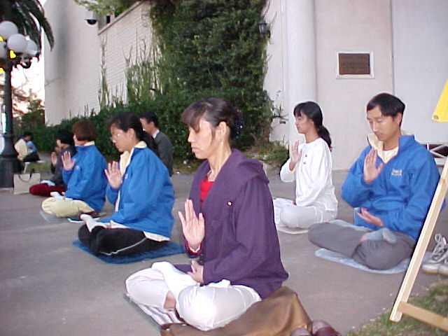 由于正值下班时间,来往行人及车辆很多,行人纷纷表示支持法轮功,一位居住在附近的美国中年男士讲:“我经常出来散步,每次见你们在中领馆前炼功,是非常和平的,我前几天已看过电视报导,前几天有两位西人法轮功学员因在天安门广场拉开横幅而被捕;到天安门广场去,意味着生命危险和死亡,我知道这是人权问题,我也曾拨电话给中国政府机构,他们不理睬,只有向美国政府反映;”当他知道事隔一天后,又有30-40名西人学员在天安门广场遭受到暴行和逮捕消息后,惊呆了,他立即索取了资料,表示不但给家人看,而且给更多的朋友看,让他们知道法轮功真相。