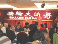 在文艺节目之后,还播放了由学员制作的《法轮大法和平之路》录像片。