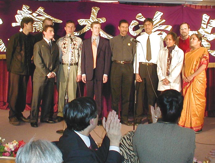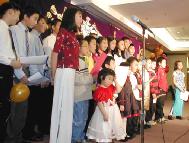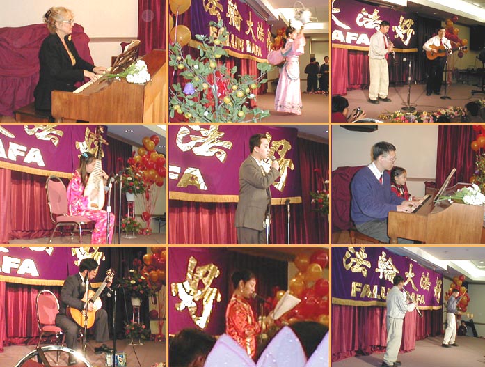 在随后的文艺演出中,明慧学校的小学生(小弟子)、西方学员、与会嘉宾,纷纷表演了自己的拿手节目,如合唱、独唱、钢琴独奏、乐器、武术、舞蹈等等,赢得了观众的阵阵掌声。