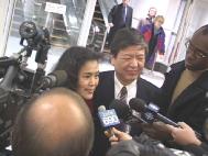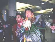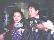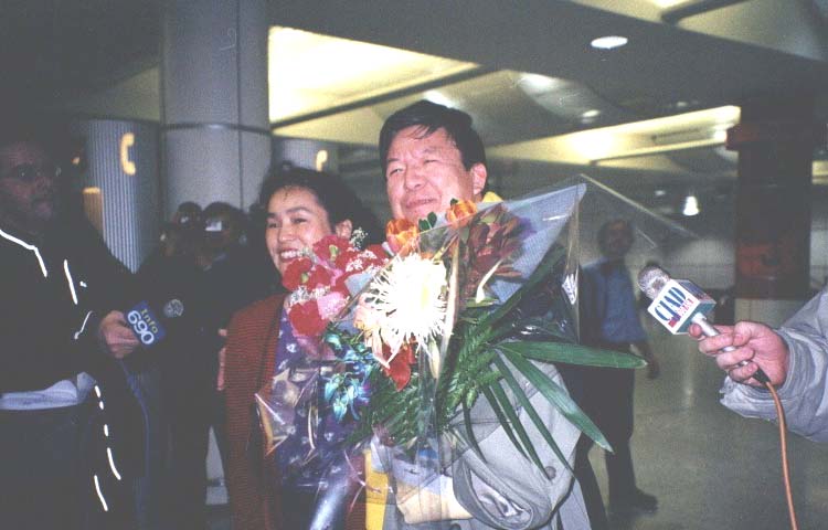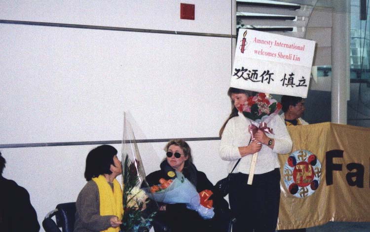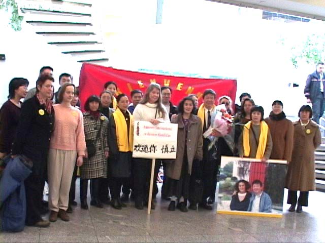 | 国际特赦代表欢迎林慎立 | 林慎立与妻子李进宇 |