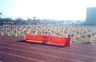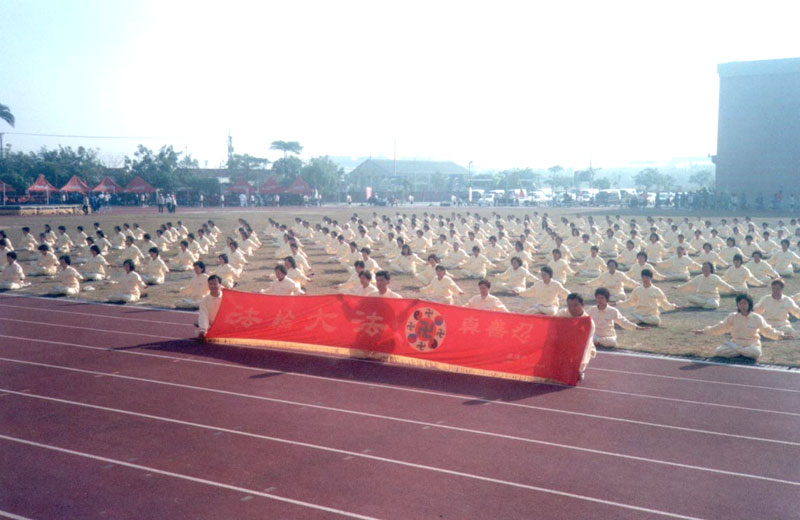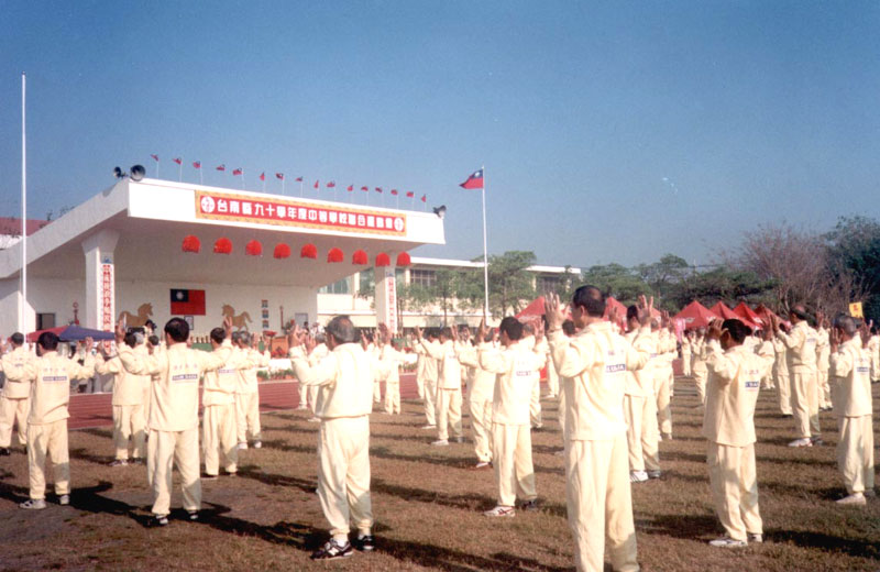 台南县中等学校(包括高中、国中)联合运动会,2002年2月26~28日在学甲镇学甲国中举行。学甲国中陈校长在今年1月底参加了台南县寒假教师法轮功研习而得法,研习过后,他知道法轮大法不只是使人身体健康,更是着重心性的修炼,使整体社会道德快速回升的最好方法,所以他也本着一颗洪扬大法的心,赶紧联络教育局体健课,争取法轮功功法表演的机会,并获得县政府的首肯。