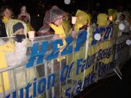 1月31日晚,大约200名法轮功学员在世界经济论坛会场曼哈顿华尔道夫大饭店前面举行了一次烛光悼念活动。这是前来参加大纽约地区经验交流会的学员们举行的许多活动之一。这些活动的中心目的是为了向商界精英们讲清在中国发生的这场迫害的真相。