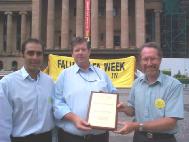 一名省议员,两名地方议员及布里斯本市警察长官参加了开幕典礼。警察长官代表长官办公室表彰了法轮大法学员在去年英联邦首脑会议活动中表现出的祥和的表率形象。省议员和地方议员也分别发言,表彰大法学员遵循真善忍的法理,并反复强调他们个人对这些法理的极大支持。庆典上还宣读了十三位因故不能出席开幕典礼的地方议员、省议员和联邦参议员发来的公告信和祝贺信。章翠英也在会上发言,陈述了她在中国遭到的虐待,并感谢澳洲政府帮助她走出牢狱,重获自由。