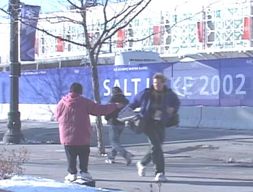 【明慧网2002年2月7日】距冬奥会开幕还有一周,来自世界各地的新闻记者已经络绎不绝地来到盐湖城冬奥会新闻中心办理冬奥会采访证件。为了使更多的人了解法轮大法和法轮功学员受迫害的事实真象,2月1日从加州刚刚赶到盐湖城的法轮功学员在当天来到冬奥会新闻中心楼前发送真相资料。在新闻中心楼前过往的记者都戴着冬奥会特别采访证,十分醒目,他们非常愿意接受讲清真象的资料。看到有带着摄像机的记者,学员就送上讲清真象的录像带。这些摄影记者拿到录像带都很高兴,而且都很愿意与学员攀谈,以了解更多有关法轮功的情况。一位来自日本的摄影记者接过录像带后非常感谢,特别从包中找出一个纪念章赠送给学员。