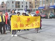 上午10时,犹他州少见的大游行开始了。学员手持各色横幅,伴着柔和悠扬的普度济世的音乐,在西300号大街上缓缓前行。纯朴善良、爱好和平的犹他人民对人权和信仰自由有深刻的理解。当他们简单地了解了法轮功,并听说了法轮功在中国所受到的不公正待遇后,许多人欣然接受学员手里的真相材料,并询问如何进行更多帮助。