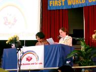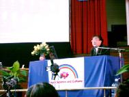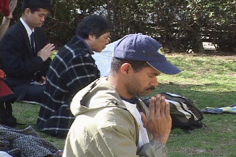 洛杉矶当地的近十名法轮功学员和一位来自台湾的学员作了发言,其中包括数名西人大法弟子,一个七岁的小弟子,和一位82岁的老年大法弟子。洛杉矶西人学员丹尼尔谈了他在早她两年炼功的女儿的影响下如何开始修炼大法的经历。西人大法学员阿伯特讲述了他在中国教书时的得法故事和去天安门和平请愿的经历。82岁的老年大法学员谈到修炼大法前曾经犯严重中风,修炼大法后不久就扔掉了拐杖,能够站起来走路。还有一位仅得法三个月的洛杉矶大法弟子也作了发言,讲述了她如何在大法弟子们慈悲讲真相的过程中找到了返本归真之路,她向在苦难中还在慈悲地、艰难地讲真相的大法弟子表示真诚的敬意。