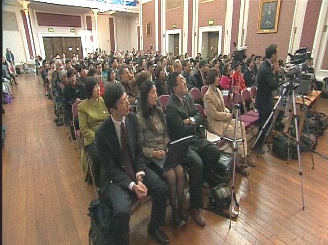 记者:你们可能还记得,去年我和戴冬雪(音译)谈到了法轮功以及中国(江泽民)政府对他的敌对。当时,戴女士谈到了这对她以及她的居住在中国都修炼法轮功的家人的影响。她还告诉我三圣学院的学生赵明因为是法轮功成员而在中国的劳改营中度过了过去的两年。嗯,现在,事情的发展是赵明将于星期二从他正在被关押的劳改营中获释。他在爱尔兰的支持者一直在为他的获释而努力,现在这一天终于要来了。那么,这会实现吗?好,现在和我一起在演播室的仍然是戴冬雪,和吉姆.道林(Jim Dowling),他们是赵明的朋友和同学。欢迎你们俩来作客。现在,戴女士,很高兴能再次见到你,这次是一个好消息了。