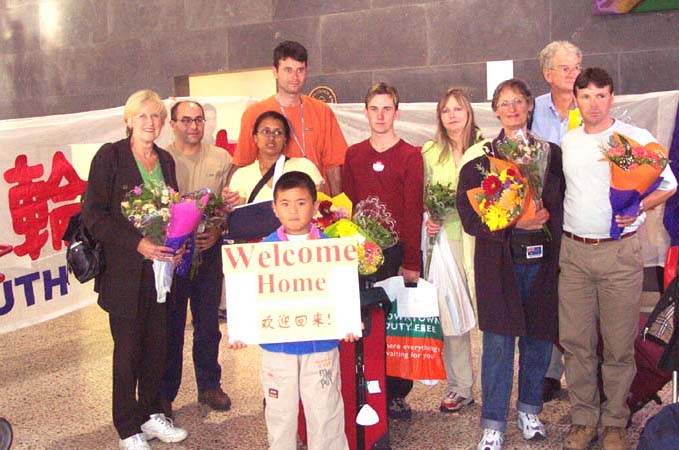 丹迪斯.约翰逊(Denice Johnson)及斯图尔特.马丁(Stuart Martin)母子说,我们在去天安门之前带着印有“全世界共有五十三个国家的一亿人在修炼法轮功”字样的标签四处张贴、散发。我们还刻了一枚写有中文“真善忍”的印章,走到哪里就将这三个字印到哪里。我们被捕后告诉警察,我们就是想让受蒙蔽的中国人民知道在中国以外的各个国家人们都可以自由修炼法轮功。