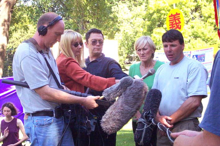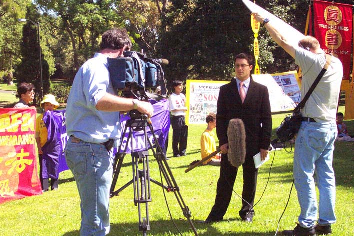 当天晚上,澳洲各主要媒体都以显要的位置报导了对学员们的采访。有的节目中的镜头长时间对准了中国大陆法轮功学员受酷刑折磨的照片,ABC在新闻节目中更是以法轮图形作为主持人播报新闻稿的背景。
