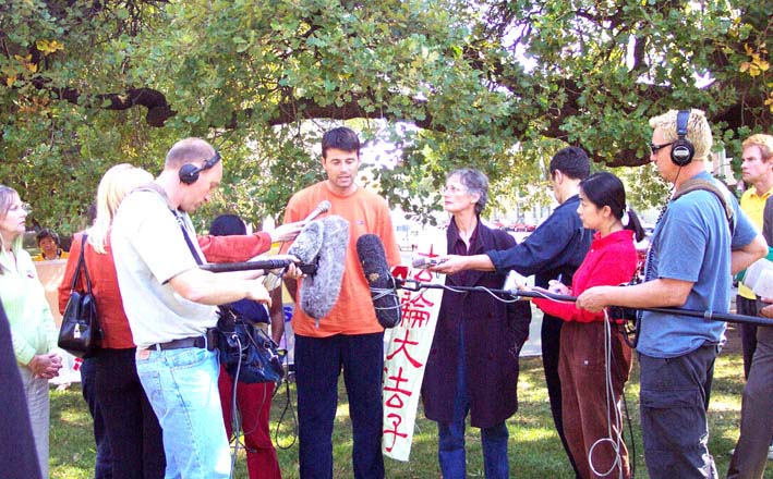 学员们不顾旅途辛劳,一下飞机就立即奔赴墨尔本市内最大的炼功点——弗拉格斯塔夫(Flagstaff Gardens)公园举行了新闻发布会。ABC电台、7频道、9频道、10频道和大纪元时报等多家新闻单位出席了发布会。