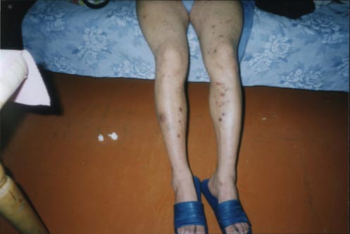 2月22日当我绝食抗议16天时,吐血越来越多,恶警怕我死在二所,就主动找家属给办了“取保候审”又找家属讹了3000元所谓的“保释金”,至今未给开收据。我被释放了。邪恶迫害大法弟子的计划破产了。继83天绝食抗议堂堂正正走出长林子劳教所的大门之后,我又堂堂正正地走出了第二看守所的大门。回家后我一直在吐血,身上长满了疥疮(见附图),这是邪恶迫害造成的。我的身心受到了严重的摧残。