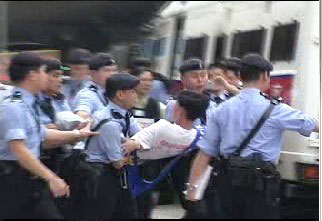 香港警方在3月14日发出第四号新闻公布中,宣称昨天在中联办警方强力搬走静坐的法轮功学员的过程中,“某些请愿人士反抗,令五名警察受轻伤,受伤警员有胸口被踢,亦有一名警员手臂被咬伤”。在昨日深夜仍被警方无理拘禁的法轮功学员严正澄清:法轮功学员一贯按照和平、非暴力的“真善忍”精神处事待人,绝无法轮功学员伤害警员之事,而有关警员手臂被(学员)咬伤云云,纯属别有用心的污蔑之词。相反,在警察动粗的过程中,有9名学员受伤。但学员要到医院验伤,却受到有人故意拖延与掩盖真相。对于上述有关方面知法犯法的行为,法轮功学员保留依法追究的权利。