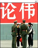 从紫禁城去天安门,我们必须穿越隧道,就象地下通道,当登上楼梯时,有10名警察守候在那里,他们对西方人非常怀疑。我心中依旧感到很平静,我想:我没做错任何事,我来这里讲清真象,这没有错,我从警察身旁走过,感到我们四人有着同样的感觉。