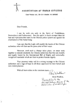 如你所知,长期以来我一直是人权倡导者,作为一名美国参议员,我将继续提倡人权。人权问题是一个基本问题,在此问题上是不能妥协的。我们绝不容许任何人因为其宗教、政治或哲学信仰而受到恐吓、拘留和起诉。