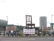 | 向联合国工作人员讲真相 | 广场右面一景 | 向带队教授讲真相 |