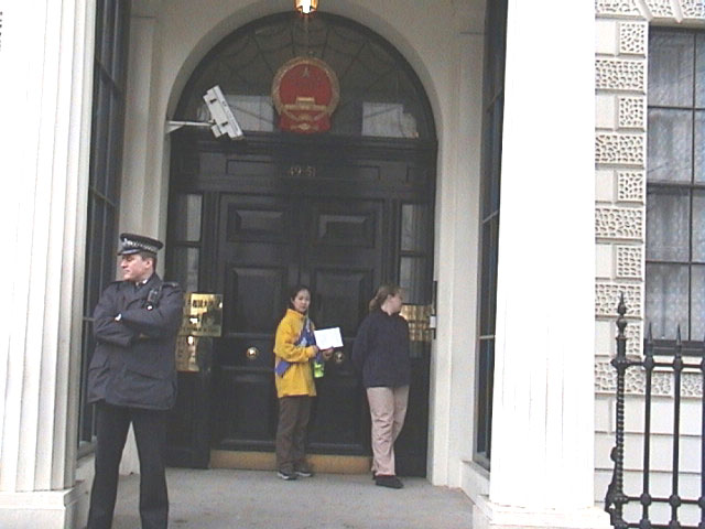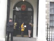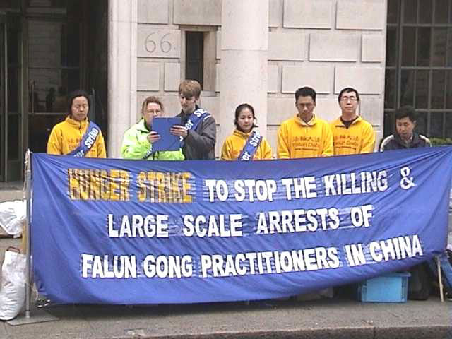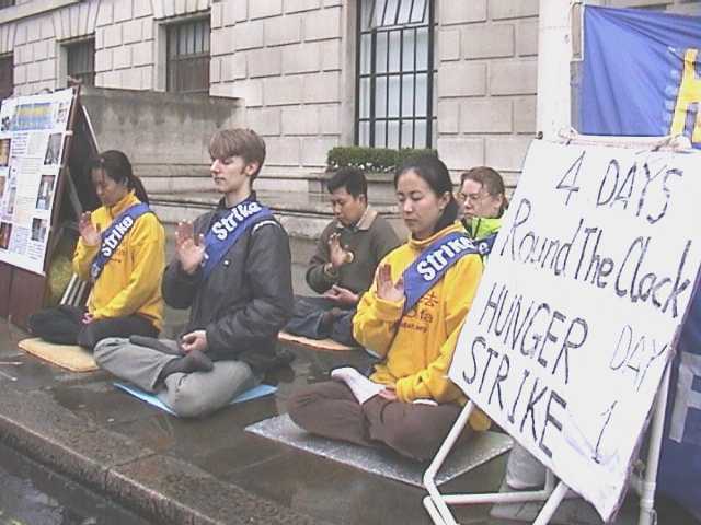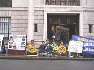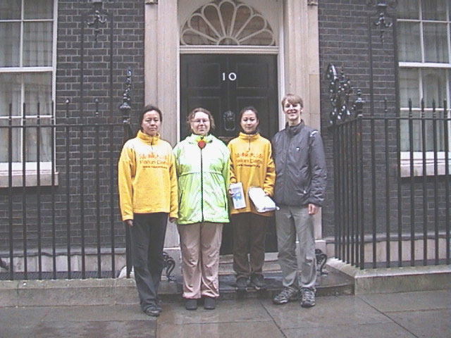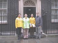 | 大法弟子宣读绝食声明 | 向唐宁街首相府递信 | 向中国大使馆递交请愿信 |