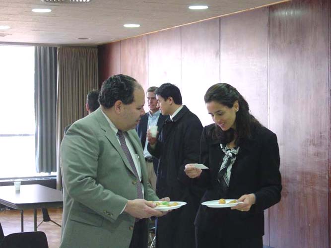 招待会期间,联合国非政府组织代表与法轮功学员自由交谈,获得了大量有关法轮功受迫害的信息。非政府组织代表并与学员合影留念。