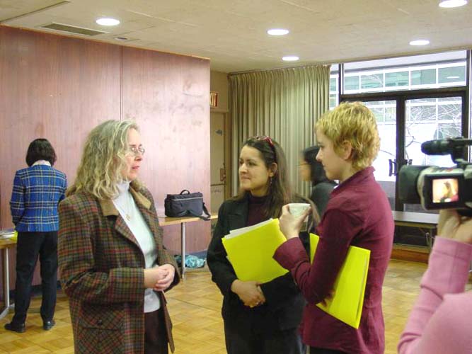 不久前从天安门广场请愿归来的法轮功学员李维.布朗迪(Levi Browde)主持了招待会。美国国家新闻爱米奖(National News Emmy Award)获得者,资深新闻记者丹尼.史彻特(Danny Schechter)介绍了他调查收集到的法轮功受迫害的情况和他根据这些资料写的著作《法轮功挑战中国》(Falun Gong's Challenge to China)。招待会上还放映了丹尼.史彻特制作的同名新闻记录片。丹尼.史彻特在讲演和放映记录片后回答了观众的问题。