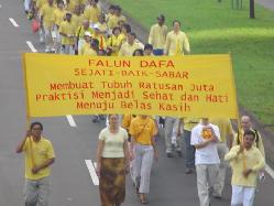 | 印尼文: | 法轮大法 真善忍 使壹亿人身体健康 心性提高 |