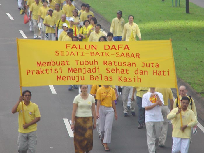 附图:印尼大法弟子在法会期间游行