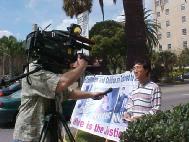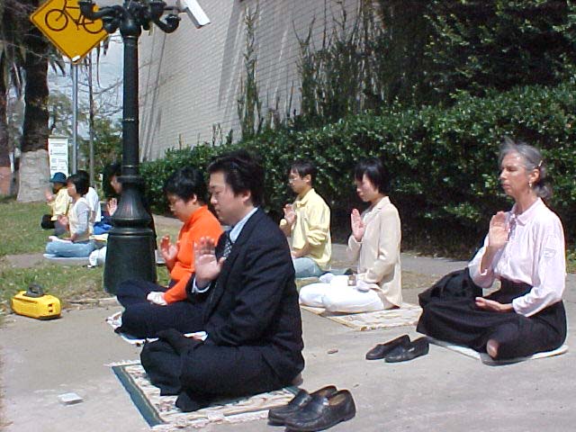 3月7日下午一点至三点,休士顿大法学员在中领馆前举行新闻发布会,英文第二十六电视台采访人员准时赶来采访,他详细地用摄影机录下几位大法学员讲述的有关长春发生的事情,中国江泽民邪恶集团打压法轮功的原因,以及介绍法轮功和大法洪传的情况等。也录下大法学员炼功的情景。大法学员三发正念。