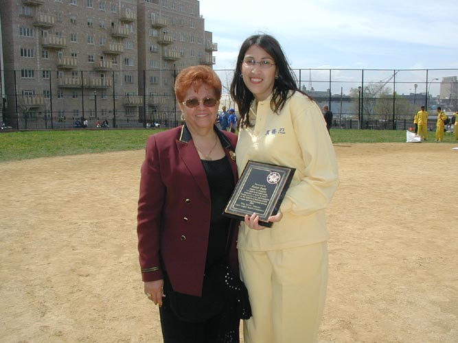 法轮功学员曾多次应邀参加此社区的公益活动。悠扬深邃的大法音乐,庄严优美的大法动作,纯正善良的大法弟子,醒目夺人的“真善忍”、“法轮大法好”横幅,热情洋溢的大法气球,给这一社区的人民留下了深刻的印象。“法轮大法”、“真善忍”开始扎根人们的心中。当邀请人在组委会上提出要邀请我们时,组委们都很高兴,一致通过提议,并决定给我们颁奖。
