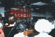 许多市民们看到学员们祥和的、声张正义的场面,又看到高级宾馆的四周警戒森严,房顶、窗檐下还闪出蒙面持枪的特种防暴兵的身影来,这一鲜明对比使市民们对江的兴师动众感到反感,对他给法轮功带来的迫害感到愤怒。一位市民对学员说:警察把你们赶到离宾馆一百多米外来严加防范,这是他们的耻辱,为何对暴虐者不敢正视?