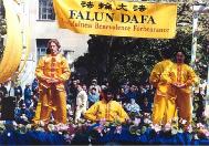 他们谴责中国政府的折磨方式,要求取消枪杀令。在中国,这个精神宗教打坐团体拥有百万人。他们在雅可比教堂的墓地(Jakobikirchhof)庄重地进行了数小时的打坐气功练习。