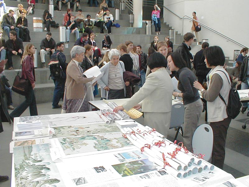 日内瓦大学共有5000多学生,在画展期间很多中国学生前来了解法轮功真相,之后改变了他们以前对法轮功的不正确观念。还有的说:“好极了,在这里举行中国画展,弘扬中国文化艺术,为中国人争光。”我们每天中午、下午两次在学生休息时,用扩音喇叭向学生和教师介绍法轮功及长春大法弟子通过有线电视台介绍法轮功真相后,江泽民犯罪集团穷凶极恶地下了“杀无赦”的命令。然后章翠英又讲述了在中国监狱的恐怖遭遇。
