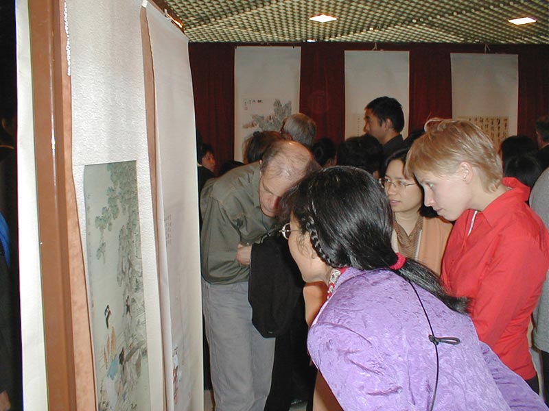 | 来宾仔细欣赏中国画 | 联合国非政府组织成员参观画展 | |