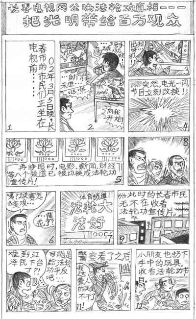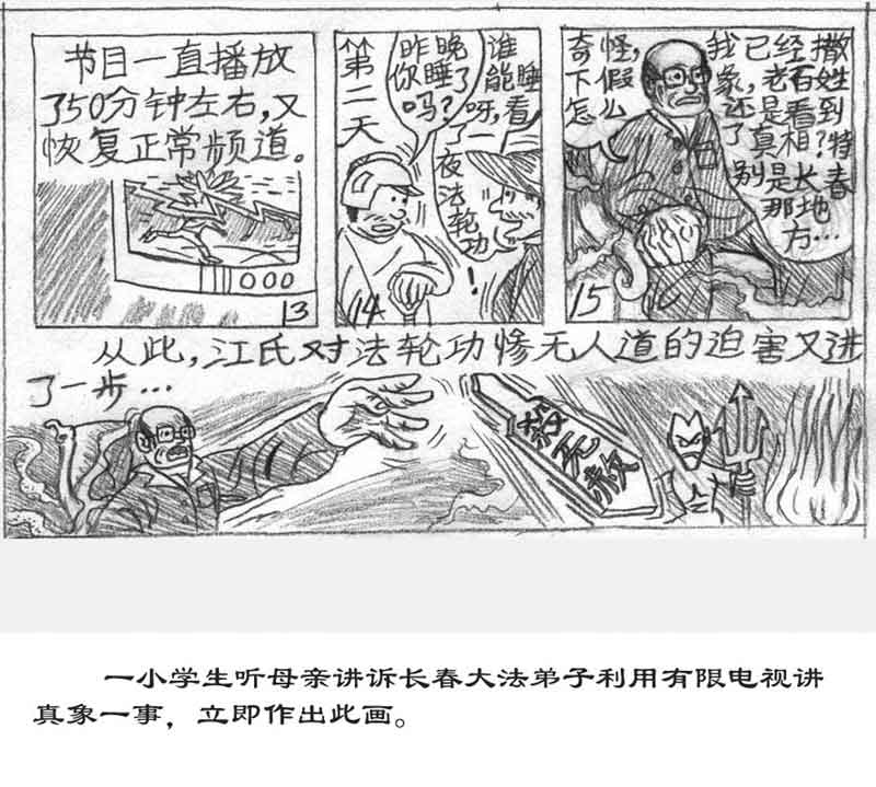 儿童漫画:长春电视网公映法轮功真相──把光明带给百万观众