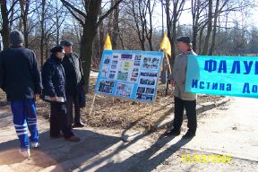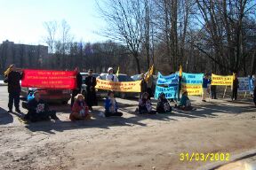 【明慧网2002年4月2日】2002年3月31日上午,莫斯科及来自圣-彼德堡和其它地区的俄罗斯大法弟子30多人聚集在中国驻莫斯科大使馆前举行示威,强烈抗议江泽民政治流氓集团在中国的暴行。自3月5日以来江泽民政治流氓集团在中国长春和其他地区疯狂地抓捕、虐杀法轮大法弟子。至今,仅长春地区就有5000多人被无理逮捕,每天都有大法弟子被虐待致死。