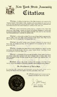因此通过决议,我,纽约州议会的一名民选代表,特此代表议长及州议会全体成员,向法轮大法的学员们致以问候和敬意,我们褒奖他们在人类大家庭中提倡真、善、忍和他们在伟大的纽约州州府地区所作的努力。