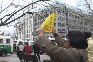 大法弟子在柏林打出横幅,高喊“法轮大法好”(图)