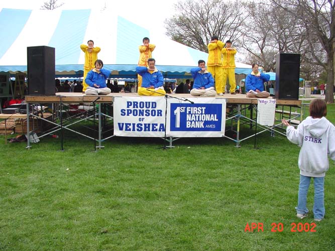除了游行以外,我们还在校园内设置之帐篷和展位介绍大法,并在校园中心舞台上做了功法表演。