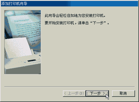 1、插入Windows安装光盘后,点击“开始”=〉“设置”=〉“打印机”,打开“打印机”窗口后双击“添加打印机”图标: