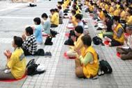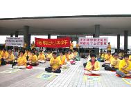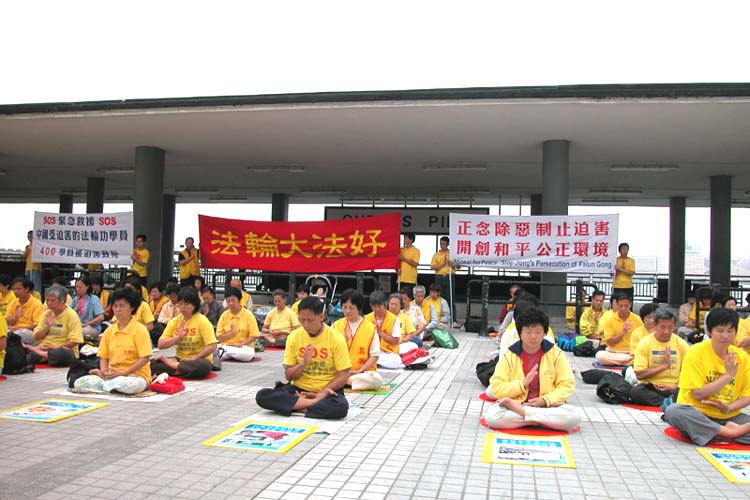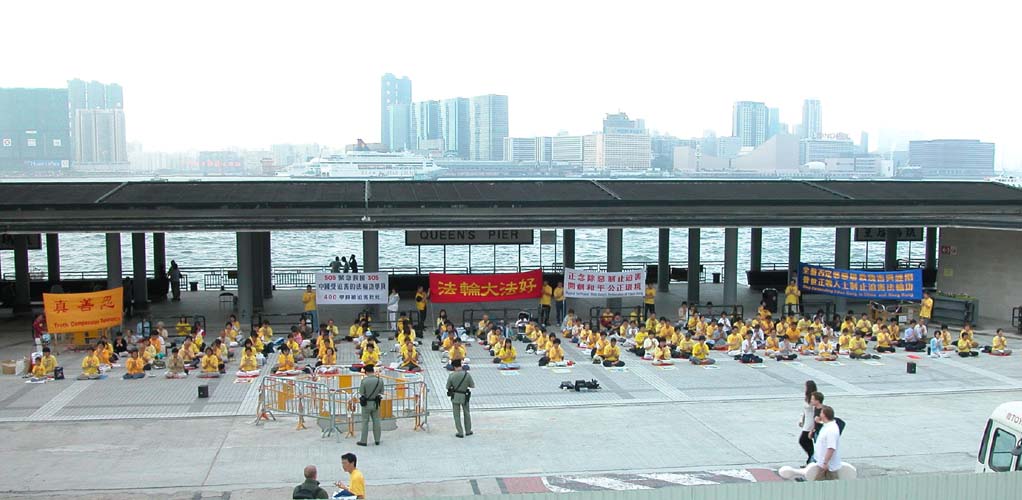 今天是一个特别的日子,所以来参加活动的学员也比平时多,有接近二百多人。学员们在排列整齐后,以发正念开始了今天的活动。一些学员站在后面拉横幅,其中一条横幅写着“正念除恶制止迫害 开创和平公正环境”,正好是香港学员处境的写照。法轮功在香港之所以仍然拥有合法地位,是因为“一国两制”的实行,但一国两制在香港落实的情况,每况愈下,尤其是香港当权者向江泽民专制集团低头,对“异见”人士或团体的处理,变得愈来愈不公正、不合理。要在香港这个特殊的环境下,开创和平公正环境,需要学员们继续正念除恶,讲清真相,同时学员们自己也应该不断学法向内找,不让邪恶有钻空子的机会。