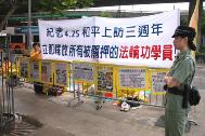 今天上午,20多名学员在警方的非常戒备和强压下,和平地在中联办外进行了三个小时的纪念活动。