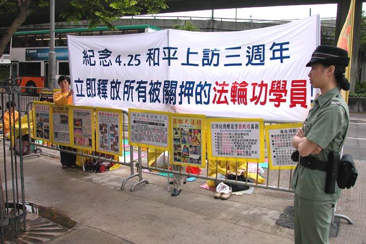 香港一批法轮功学员今天在中联办外请愿的遭遇,又一次证实特区政府里有人要把中联办门前演变成和平请愿的禁地。江泽民专制集团禁绝中国大陆含冤受屈的老百姓说话的权利,香港这边也有人助纣为虐。