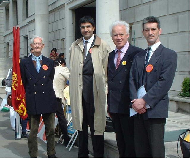 早晨10时半,学员们集聚在中国大使馆对面以炼功及集体发正念的形式拉开了一天活动的序幕。随后,英国法轮大法协会彼德.贾浩主持召开新闻发布会。英国莫恩勋爵首先发言谴责江泽民集团对法轮功学员持续三年的残酷镇压,呼吁英国政府继续向中国施加更大的压力以停止这场已持续两年多的对践行“真善忍”人类最根本道德基石的法轮功学员从肉体到精神的令人发指的。法轮功修炼者,90岁高龄的英国前外交官弗朗希斯爵士以他自己修炼法轮功后带来的健康的身体和充沛的精力证实着大法的神奇。他在发言中谈到前苏联的解体和东欧的巨变已经验证:任何专制体制对人性的践踏和摧残都会为它本身自掘坟墓。而江泽民集团对“真善忍”这一人类应普遍遵守的道德准则的仇视更是对全人类的侵犯。欧洲法轮功之友协会副主席约翰迪在发言中重申了对法轮功学员目前处境的关切,特别提到自从3月5日以来,中国江泽民集团加剧了对法轮功的迫害,仅长春就有5000名法轮功人被捕,迫害致死人数已高达400人。他呼吁世界上所有善良的人们加入到帮助中国法轮功学员获得信仰自由的这场战役中来。在新闻发布会的同时,大法弟子单手立掌,齐发正念,铲除迫害大法的一切邪恶。