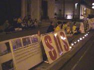 晚7时半,大法弟子又来到中国大使馆对面,打坐炼功,整点发正念。清除另外空间的邪恶。夜幕降临后,尽管寒风伴着清冷,但大法弟子对大法的那颗赤诚的心倍加炽热。大家静默无语,一片哀思遥寄远方;烛光摇曳,悼念被江泽民集团迫害致死的已逾400位的国内大法同修。活动结束时,时间已是午夜。